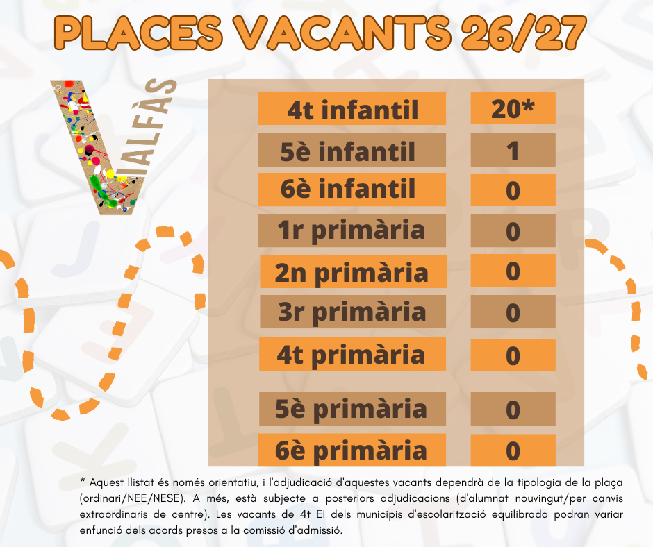 27/03/26El pròxim 📅dimecres 29 d’abril a les⏰19:00 hores es durà a terme la Jornada de Portes Obertes del CEIP Vialfàs.